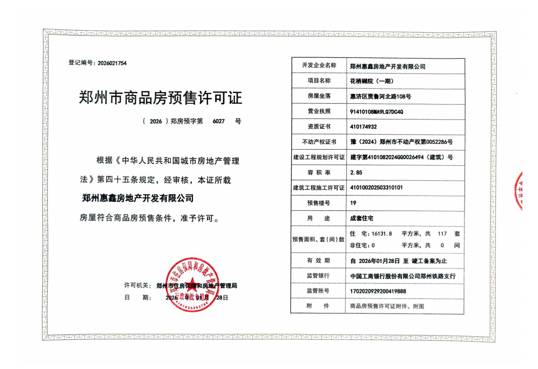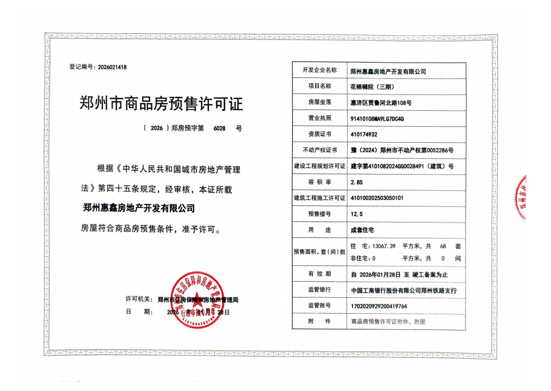 新春啟新程,捷報傳佳音。1月28日,鐵建投城發·花棲樾項目順利取得5#、12#、19#樓商品房預售許可證,為項目新春置業熱潮注入動能,為首季“開門紅”筑牢根基。
